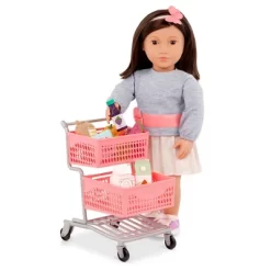 Our Generation Supermarket Play Pink Grocery Shopping Cart & Food Accessory Set For 18” Dolls