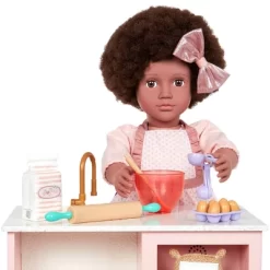 Host a sweet sleepover party with Maria! This 18-inch Our Generation doll has long brown hair that’s fun to brush and style, and her beautiful brown eyes close when it’s time to dream sweet dreams! Maria always keeps her pink elephant plush with her when it’s bedtime – it’s super soft during nighttime snuggles! Her adorable onesie pajama is scattered with stars, and the easy-open closures make it quick to put on and remove. You can even give Maria brand new styles with other Our Generation outfits to start her days! (Additional outfits sold separately)